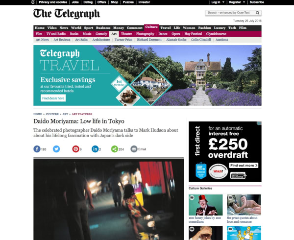 A new hotel in Japan features solely Moriyama's photography on its walls January 12, 2016Japanese photographer Daido Moriyama's work goes on display in a hotel dedicated to his work. Osaka Japan.Read more -