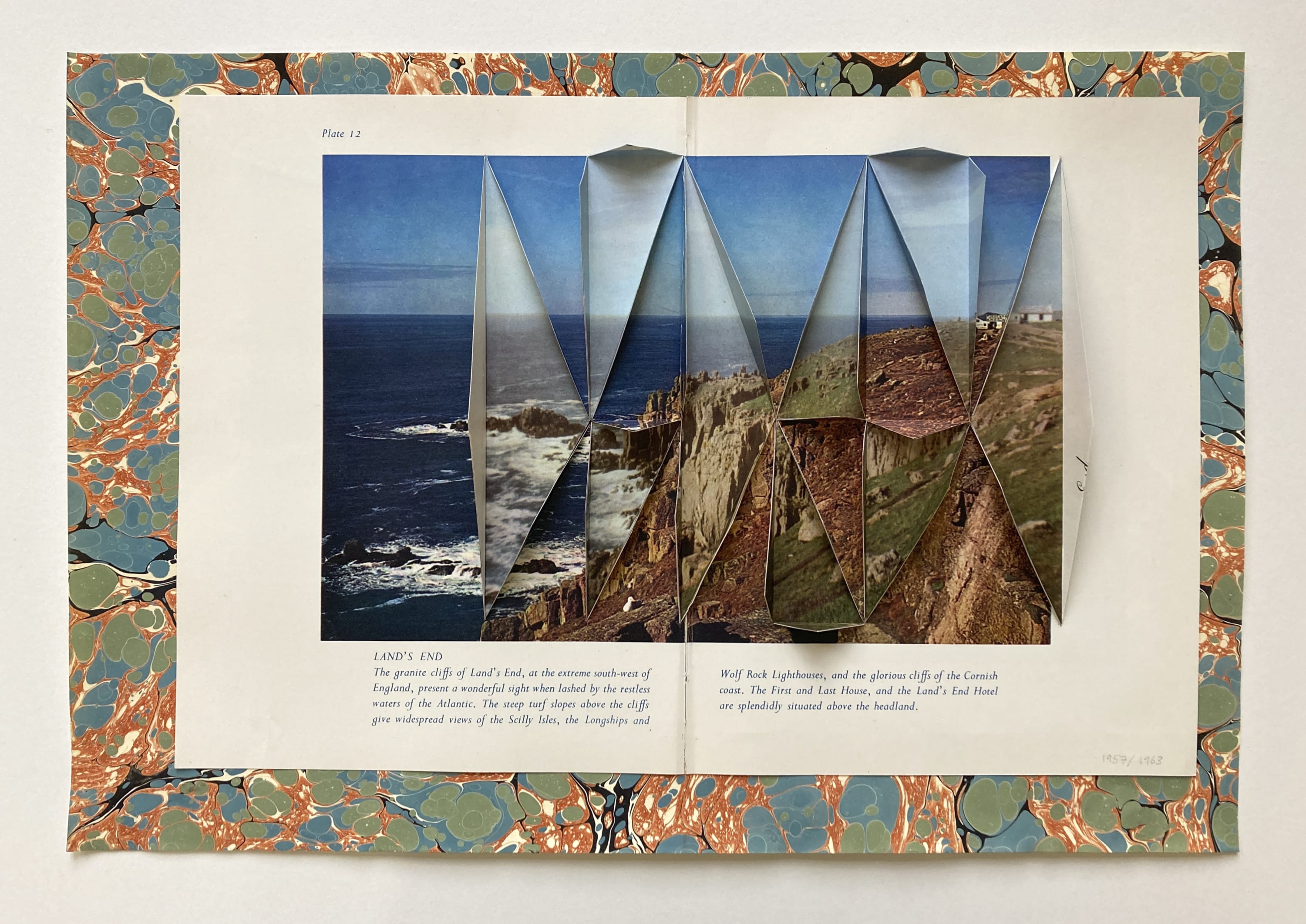 Abigail ReynoldsLand's End 1967 | 1963, 2020Book pages and marbled paper cut and folded